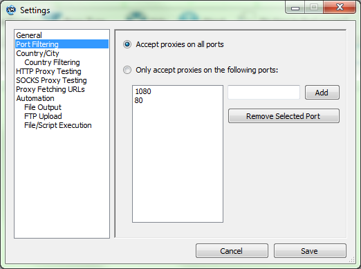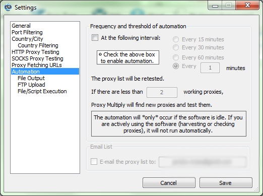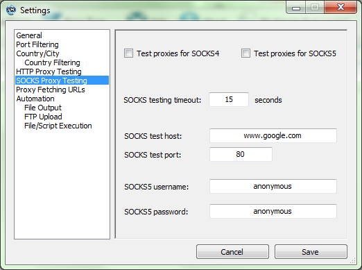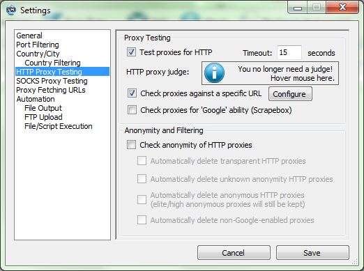 A program működését a magunk igényei szerint állíthatjuk be, mint például proxy tesztelő szerverek, időtúllépések, aninimitás tesztek, működési szálak száma.